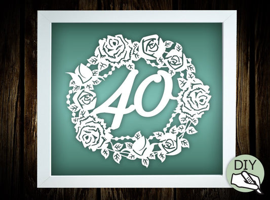 40th Birthday Papercut Template Poster Commercial License PDF PNG SVG file - digital download