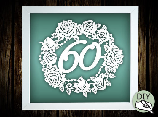 60th Birthday Papercut Template Flowers Commercial License PDF PNG SVG file - digital download