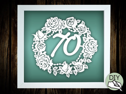 70th Birthday Floral Roses Papercut Template Commercial License PDF PNG SVG file - digital download