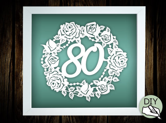 80th Birthday Papercut Template Present Commercial License PDF PNG SVG file - digital download