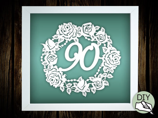 90th Birthday Papercut Template Picture Commercial License PDF PNG SVG file - digital download