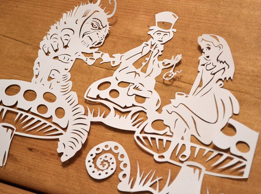 Papercut Template 'Alice in Wonderland Tea Party' PDF PNG file for Silhouette Cameo or Cricut - digital download