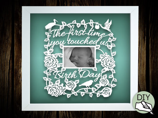 New Born Baby Picture Frame Papercut Template PDF PNG for handcutting & SVG file for Silhouette Cameo or Cricut - digital download