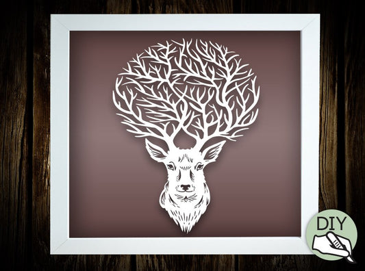 Reindeer Stag Papercut Template PDF PNG for handcutting & SVG file for Silhouette Cameo or Cricut - digital download