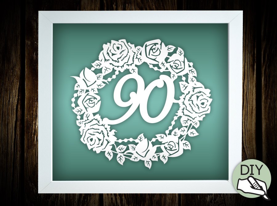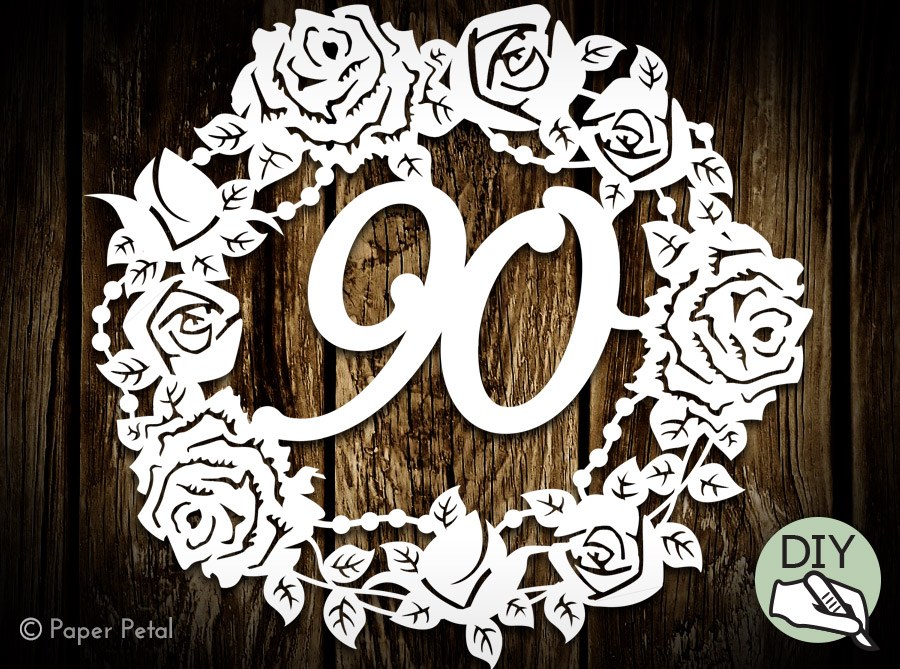 Always wanted to have a go at cutting your own paper cut? Why not try cutting this 90th Birthday floral wreath paper cut template.