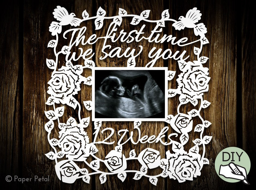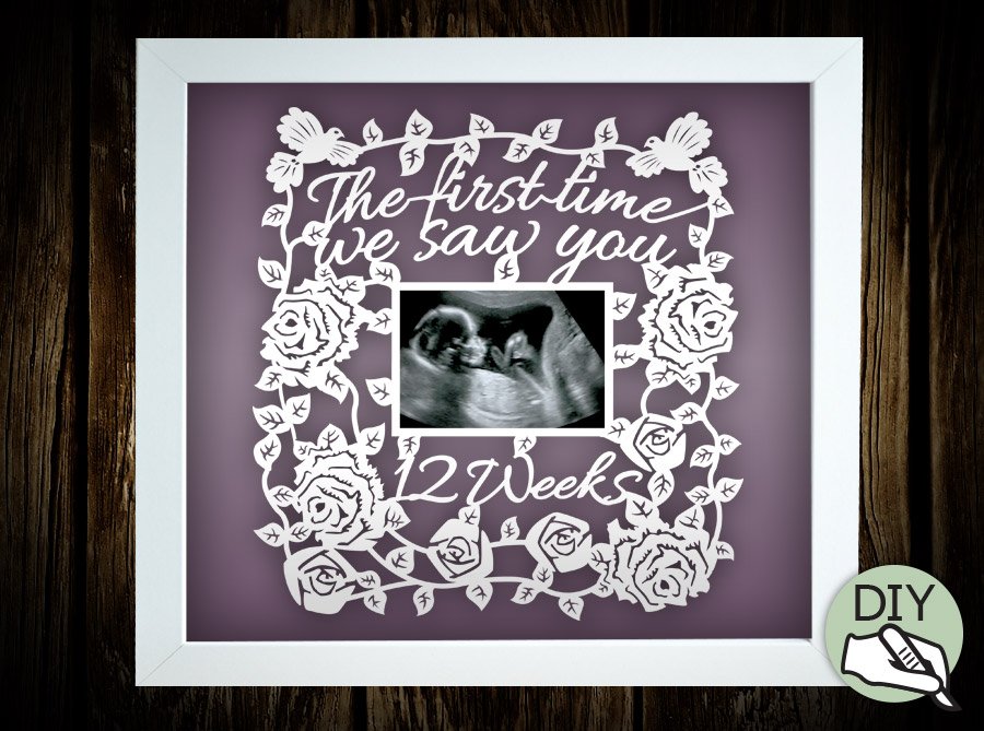 Baby UltraSound Picture Frame Papercut Template PDF PNG for handcutting & SVG file for Silhouette Cameo or Cricut - digital download